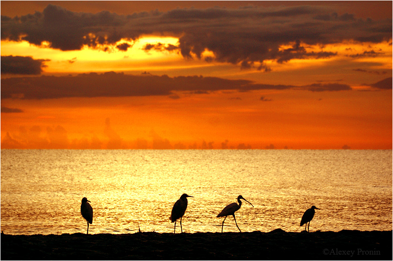 Egrets at sunset - Naples, Florida, Sept. 2014 ©Alexey Pronin
